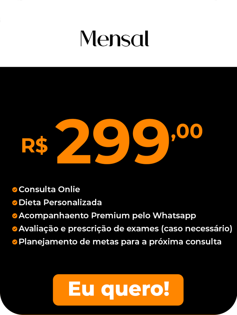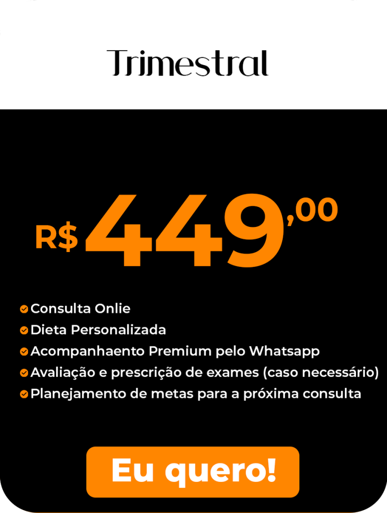 Com todas essas informações, irei elaborar seuplanejamento alimentar. Você receberá em até 3 dias úteis em PDF pelo WhatsApp e no app personalizado.